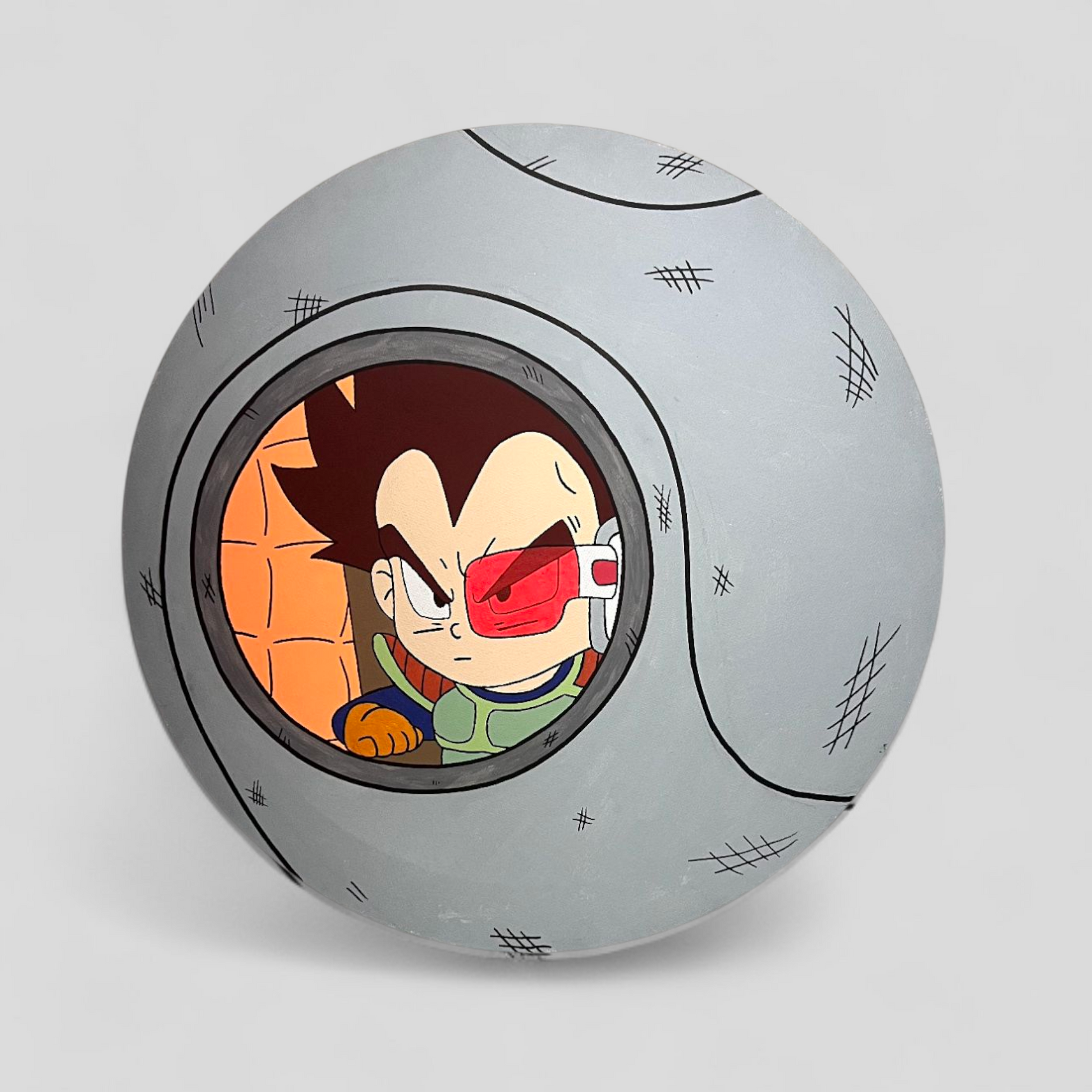 "Experience the power of Vegeta in his iconic color scheme from Planet Arlia with our Arlia Vegeta Space Pod Canvas! Measuring at 16 inches, this canvas captures the intensity and strength of the Saiyan prince. Decorate your space with this must-have piece for any Dragon Ball fan!"